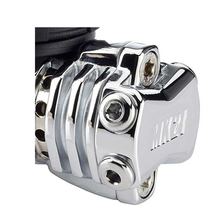 Принцип работы у этого регулятора такой же, как и у флагманской модели SCUBAPRO Mk25, но в случае с Mk21 нет поворотной турели и пятого порта. Впрочем, последнее легко