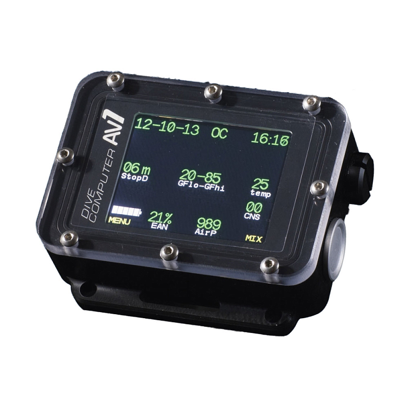 В качестве основного алгоритма декомпрессионных расчетов в AV1 использован хорошо зарекомендовавший себя алгоритм Бульмана ZHL-16C в модификации Эрика Бейкера (Градиент-факторная модель)