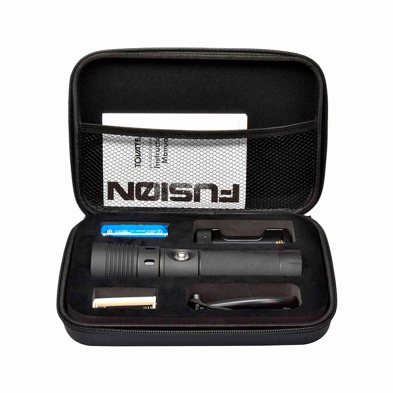 В комплекте: ремешок на руку, 26650 Li-ion аккумулятор, зарядное устройство, USB-кабель, мягкий кейс для хранения.