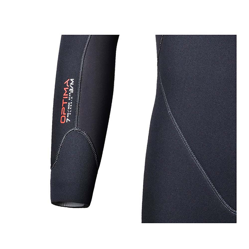 Гидрокостюм BEUCHAT Optima 5 мм – высококачественный дизайн и опыт компании Beuchat, позволил изобрести современный, комфортный гидрокостюм с эксклюзивным узором, разработанным во Франции. Предварительно сформированный анатомический крой, который делает плотное, комфортное прилегание костюма, в области рук и ног, контурной части спины и промежности. Дополнительный комфорт и больше свободы движений даёт эластичный неопрен Elaskin X 6.4. На коленях используется покрытие Supratex, защищающее их от механических повреждений. В области ягодичных мышц нанесен противоскользящий рисунок, особенно актуальный при погружениях с лодки. На плечах имеется протектор, защищающий костюм от истирания при контакте с ремнями BCD.