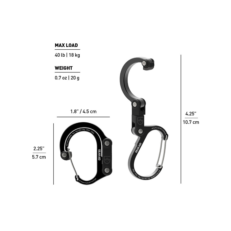 Зажим для снаряжения Heroclip Mini это инновационный карабин, предоставляющий решения для повседневных задач. Эти многофункциональный карабин позволяет удобно и надежно крепить вещи, сумки или снаряжение. Также отлично подходят для подвешивания гравитационных фильтров на ветвях деревьев, инструментов на лестницах или ручек ручной клади, на ручках чемоданов. Этот универсальный зажим для снаряжения надежно держится, вращается на 360° и складывается компактно в отличие от других карабинов, клипс и крюков, помогая вам организовать снаряжение и держать его там, где вам удобно, независимо от вида активности. Карабин также имеет более широкий замок по сравнению с обычными карабинами и клипсами, а также крюк с резиновым наконечником. Крепкий карабин поддерживает и надежно закрепляет вес до 18 кг. Полностью вращающийся поворотный крюк обеспечивает доступ к снаряжению. Поворотные соединения позволяют подвешивать вещи в узких местах. При неиспользовании крюк надежно складывается на карабин. Этот продукт предназначен для подвешивания снаряжения, а не для подвешивания людей. Габариты: 4,8 см x 5,7 см. Резиновый наконечник. Крюк надежно подвешивается к практически любой поверхности. Складывается вверх и вниз. Вращается на 360 градусов. Широкий замок. Складывается и утаскивается в форму карабина.