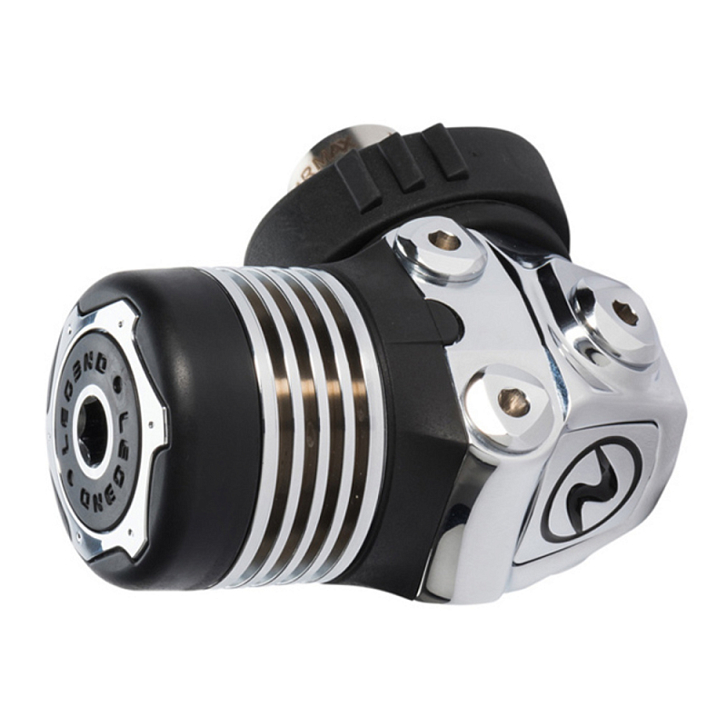 Первая ступень - автоматическое запирающее устройство (ACD). Когда баллон отсоединен от вентиля, система ACD препятствует проникновению воды в первую ступень, изолируя ее от внешней среды при отсоединении регулятора от вентиля баллона. Защищает регулятор от влаги и загрязнения во время промывки и хранения. Не влияет при этом на производительность регулятора. Делает первую ступень еще более безопасной для использования с Nitrox. Вместе с сухой камерой система ACD обеспечивает полную изоляцию первой ступени от воздействия окружающей среды. Исключительная устойчивость к обмерзанию, которая обеспечивается тремя факторами. Нет воды внутри – нет льда. Внутренний механизм первой ступени полностью изолирован от воды благодаря сухой камере. Глубокие ребра радиатора обеспечивают большую поверхность теплообмена и препятствуют образованию льда на механизме. (площадь теплообмена на 70% больше, чем у предыдущей версии Legend и на 30% больше, чем у Legend Glacia). Пластиковый колпачок защищает внешнюю мембрану от образования кристаллов льда. Автоматически сбалансированный мембранный механизм обеспечивает постепенный рост промежуточного давления для максимально комфортного дыхания. Это позволяет компенсировать резко увеличивающуюся плотность воздуха на большой глубине. Маховик Din новой эргономичной формы для удобства откручивания регулятора мокрыми руками или даже в самых толстых перчатках. 4 порта низкого давления, 2 порта высокого давления, расположенных под оптимальным углом для идеальной трассировки шлангов.