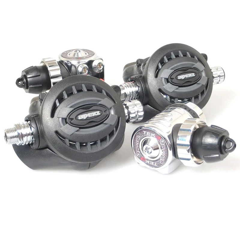 Комлпект Регулятор APEKS Tek3 Set – компания Apeks разработала уникальную первую ступень, предназначенную для использования со спаркой. Возможность собрать регуляторы TEK3 таким образом, чтобы обе внешние диафрагмы были направлены на середину, а все шланги можно было направить вниз. Это не только позволяет получать более обтекаемую форму, но и обеспечивает безопасность в надголовном пространстве. Еще одним явным преимуществом для дайверов является легкость доступа к вентилям баллона, что бывает жизненно важным во время погружения. Tek Set имеет 1 порт высокого давления и 3 порта низкого давления, расположенные под оптимальным углом, для улучшенной трассировки шлангов. Сухая камера защищает внутренний механизм от попадания воды, уменьшая риск замерзания, загрязнения и отложения соли. Максимальное рабочее давление 300 Бар.