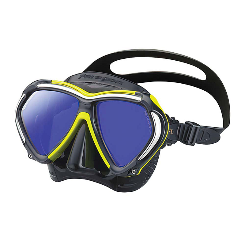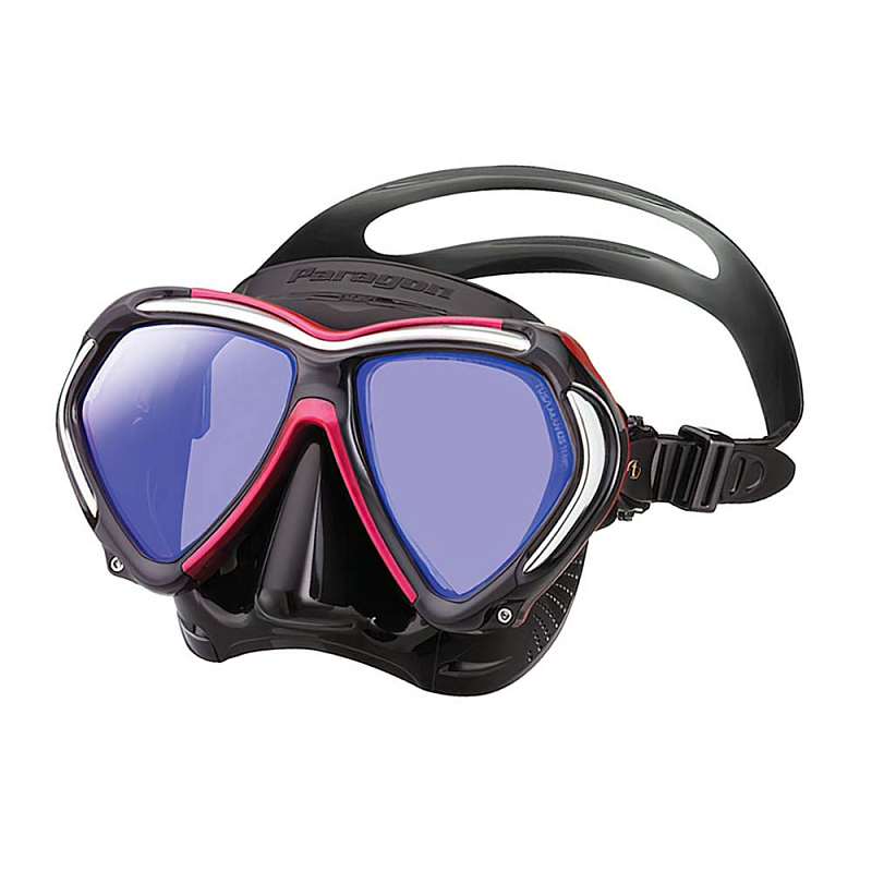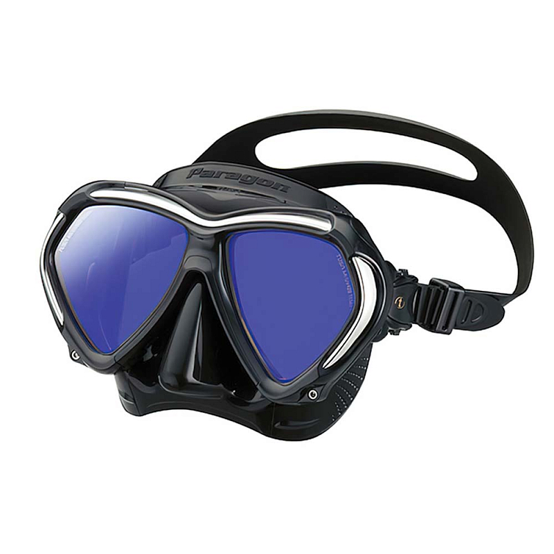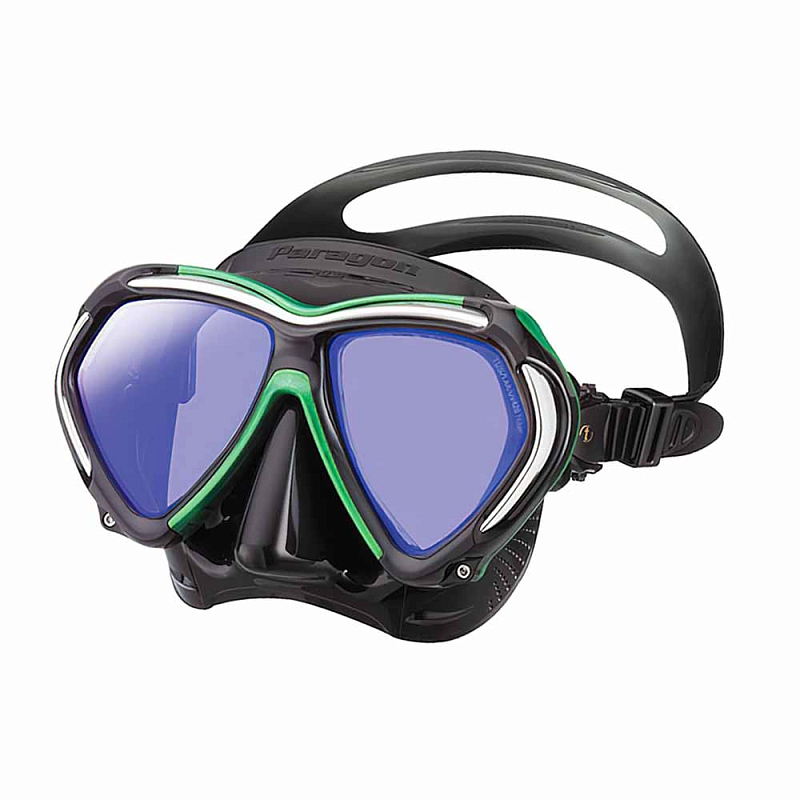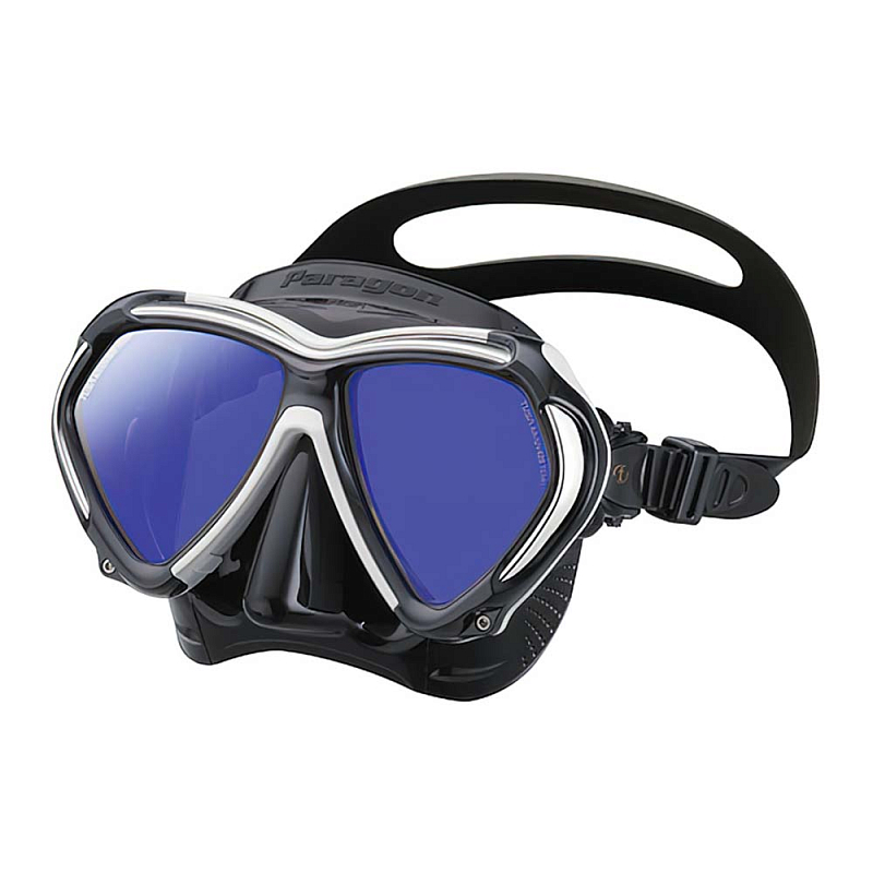 Маска TUSA Paragon – это комбинация революционно новых особенностей конструкции, обеспечивающих великолепное прилегание, комфорт и улучшенную функциональность. Paragon создана для профессиональных дайверов, а также отлично подходит для сноркленга. В маске используется новая усиленная рамка Tri - Mix состоящая из трех разных материалов, модифицирован обтюратор, разработанный по новой технологии Freedom Fit II, установлены линзы Crystal View из оптического стекла с обработкой UV 420 и антибликовым покрытием AR. Новейшая рамка, это три разных слоя объединенные для создания единой структуры рамки маски. Полиуретановый защитный бампер и кросс-лучевая металлическая структура рамки объединены с исключительной прочностью поликарбонатной рамкой, соединение каркаса рамки осуществляется с помощью винтов, это позволяет сделать её максимально прочной.