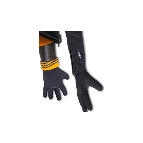 В районе запястья внутренняя часть перчатки оснащена тремя силиконовыми кольцами-уплотнителями, которые сочетаются с аналогичными кольцами на запястьях гидрокостюмов Aqua Lock. Это необходимо для плотного контакта между этими деталями экипировки. С внешней стороны перчатки, на уровне запястья, расположено небольшое удлинение, позволяющее легко надевать их поверх костюма.