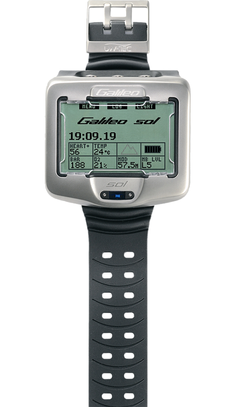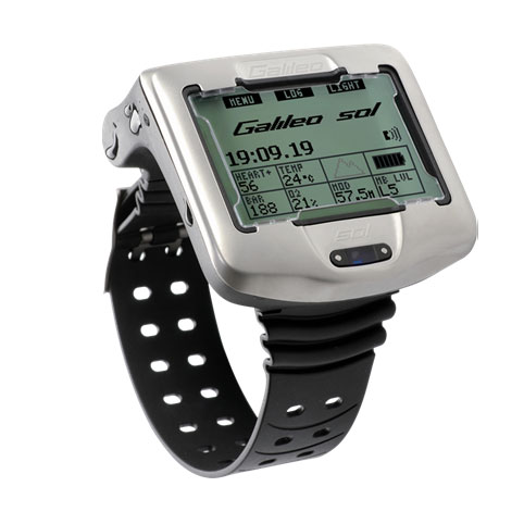 Galileo - это первый компьютер в мире, который использует беспроводной кардиодатчик- измеритель пульса для вычисления нагрузок дайвера и адаптации декомпрессионного алгоритма к реальным условиям погружений. Мы единственный в мире производитель подводных компьютеров, который учитывает реальную нагрузку дайвера в декомпрессионных расчетах, а в Galileo мы впервые использовали для этих целей реальные показатели пульса дайвера.