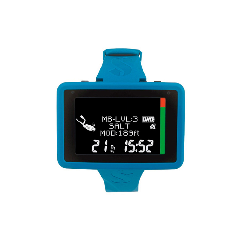 AI (воздушно интегрированный) - интеграция с воздухом отслеживает давление в баллоне и показывает истинное оставшееся время (RBT) расчеты, основанные на рабочей нагрузке дыхания.