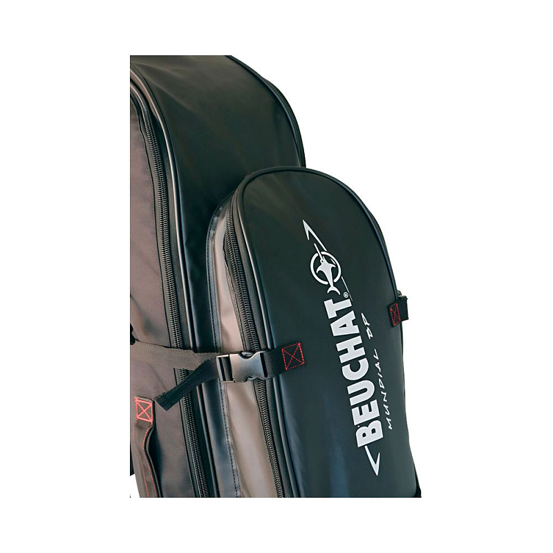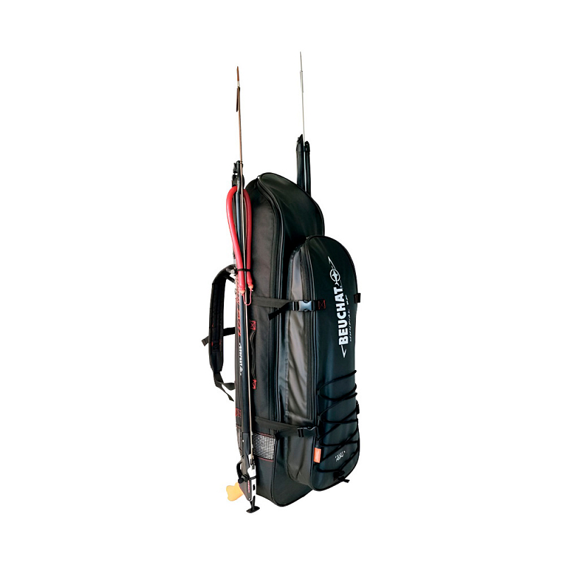 Рюкзак для снаряжения BEUCHAT Mundial 2 для полного комплекта снаряжения подводного охотника. Сумка вмещает в себя длинные ласты для фридайвинга или подводной охоты (до 103 см). Дополнительный изотермический отсек защищает ценные вещи от попадания воды и мокрого снаряжения, а также может быть использован для транспортировки свежей рыбы после удачной охоты или хранения холодных напитков. Сумка оснащена удобными мягкими лямками для переноски на спине. Мягкая поясничная подкладка обеспечит комфортное путешествие. В боковые карманы можно закрепить до двух ружей, каждое ружье крепится двумя эластичными шнурками.