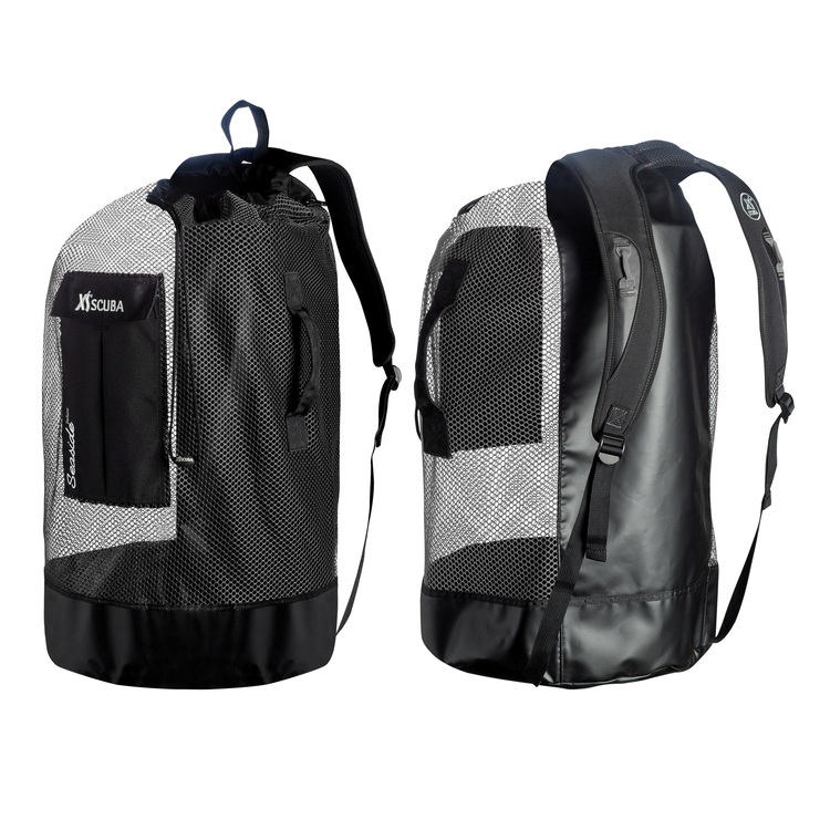 Рюкзак сетчатый XS Scuba Seaside Deluxe – это полноразмерный рюкзак из прочной сетки из полиэстера с двумя регулируемыми лямками. Дно рюкзака и спина выполнены из толстого пластифицированного брезента-тарпаулина. Внутри есть большой регулируемый в объеме карман. Наружный карман застегивается на липучку-велкро. Есть прочная ручка на боку. Горловина затягивается прочным шнуром с фиксатором. Великолепное решение для переноски оборудования для дайвинга или оборудования для снорклинга. Размеры – 38 на 71 сантиметр.