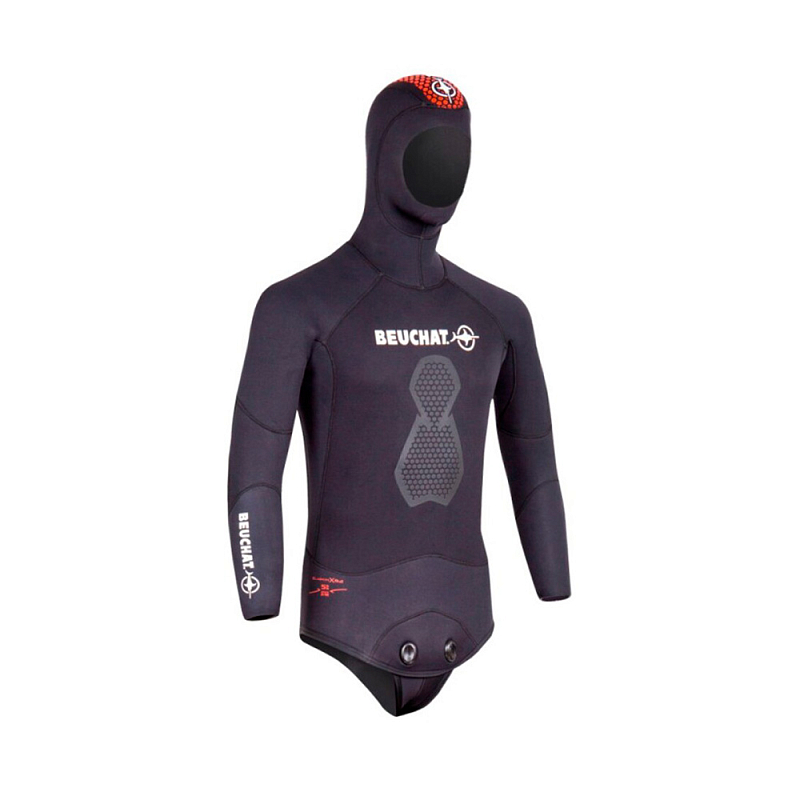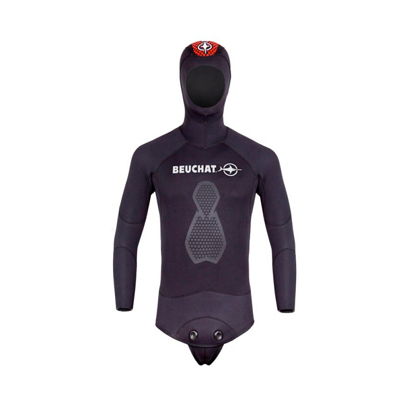 Верхняя часть неопренового костюма BEUCHAT Espadon 3 мм - костюм-двойка для интенсивной подводной охоты разработан на основе опыта BEUCHAT, бренда, который изобрел изотермический костюм для подводной охоты. Куртка комплектуется встроенным шлемом с большой красной полоской на капюшоне для повышения безопасности на поверхности хорошо заметной с берега и лодки.